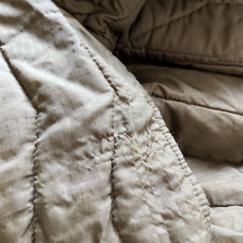 ファスナー入口部分若干破れてます。きちんとファスナーは止まります。内タグ劣化